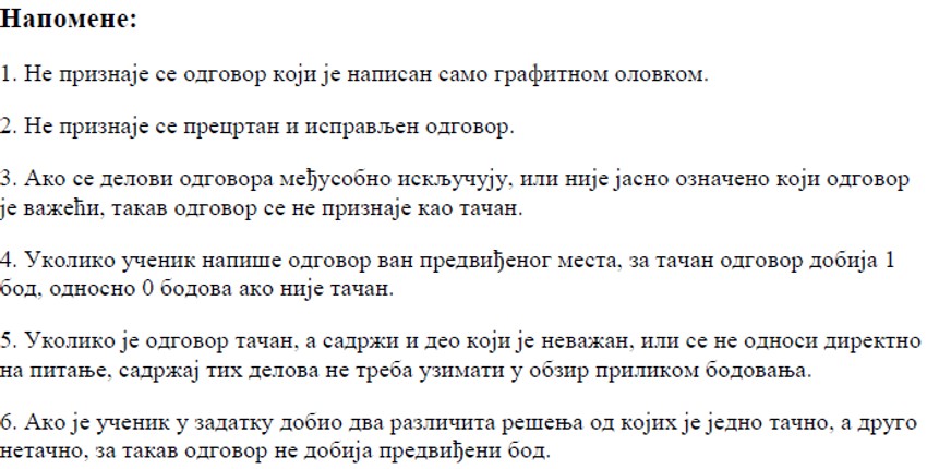 Podsetimo, osmaci su u sredu polagali test iz srpskog, odnosno maternjeg jezika, juče matematiku, a danas kombinovani, koji se se sastoji od pitanja iz biologije, istorije, geografije, fizike i hemije. Test je imao 20 pitanja.