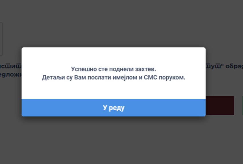 10. Kada ste sve to uradili, kliknite na zeleno polje na kojem piše "podnesi zahtev", nakon čega ćete dobiti potvrdu da je isti uspešno registrovan.