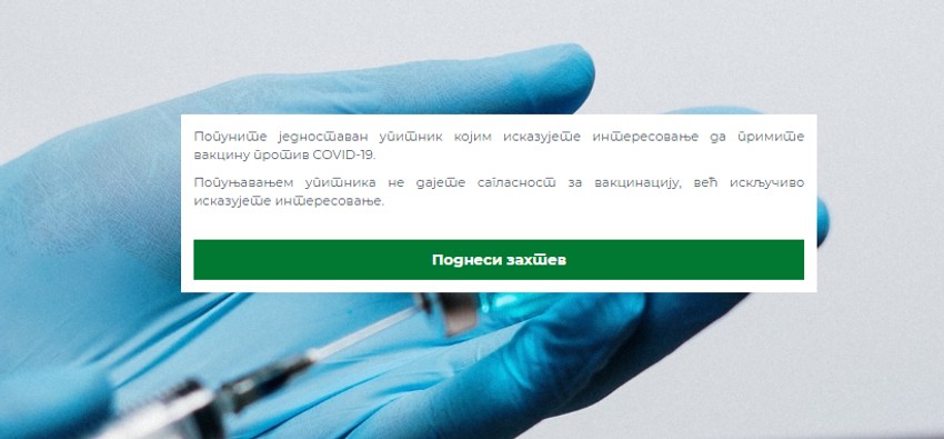 Dake, treba imati na umu da popunjavanjem upitnika i slanjem zahteva ne dajete saglasnost za vakcinaciju, već isključivo iskazujete interesovanje da primite kovid vakcinu. Saglasnost za vakcinaciju je dokument koji se potpisuje kod lekara i, ukoliko se odlučite da se vakcinišete, taj dokument ćete tamo potpisati.