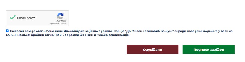 9. Na kraju treba da date saglasnost da ovlašćeno lice Instituta "Batut" može da obradi vaše podatke u vezi sa vakcinisanjem i predloži termin i mesto vakcinacije.