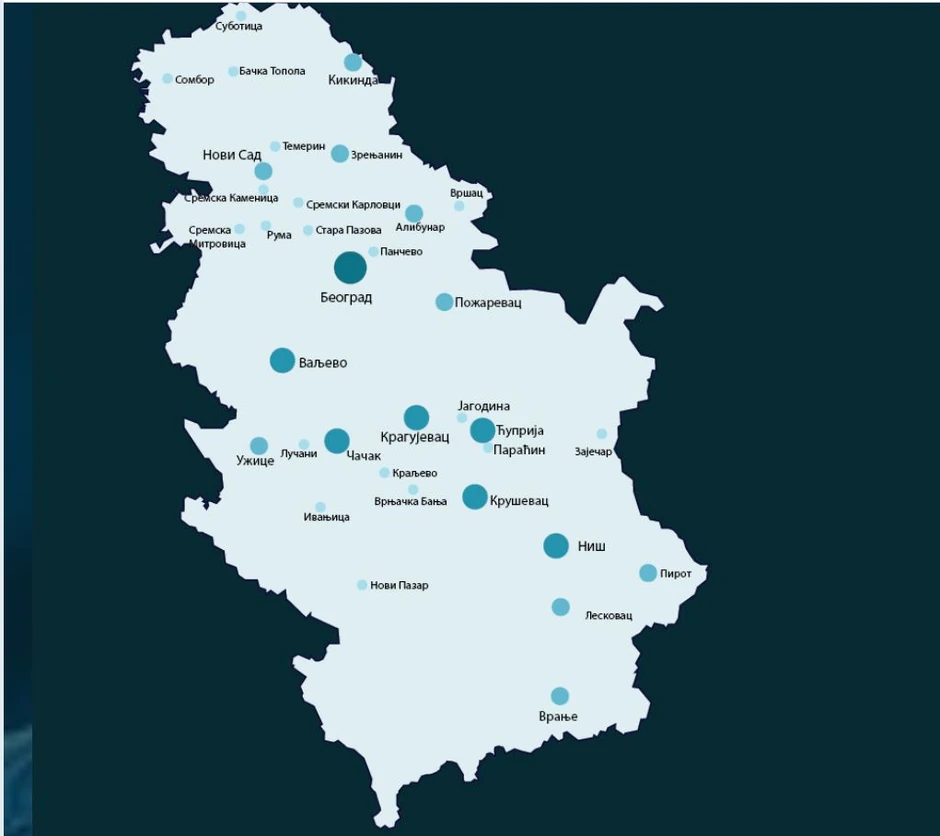 Najviše potvrđenih slučajeva zaraze korona virusom u Srbiji zabeleženo je u Beogradu, slede Niš, Valjevo i Ćuprija, pokazuju podaci objavljeni na sajtu Covid19.rs.