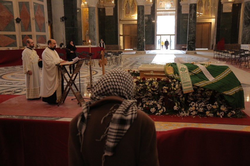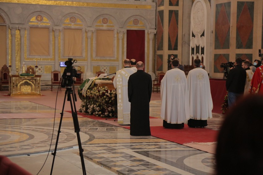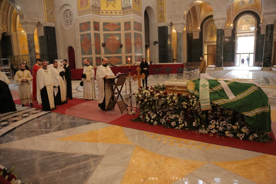 Povorka sa zemnim ostacima patrijarha Irineja stigla je u Hram svetog Save oko 12.30 časova, posle čega su gardisti Vojske Srbije uneli kovčeg i položili ga na odar ukrašen cvećem u centru Hrama.