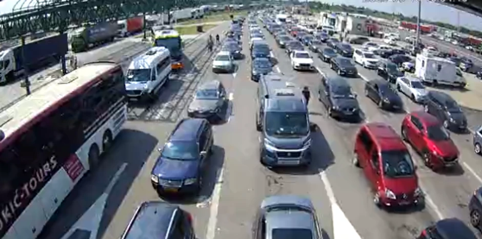 Na graničnom prelazu Horgoš, na izlazu iz Srbije ka Mađarskoj, otvoreni su svi terminali, ali je formirana duga kolona vozila, jer vreme prelaženja granice diktiraju mađarske vlasti, kazali su iz Auto moto saveza Srbije.
