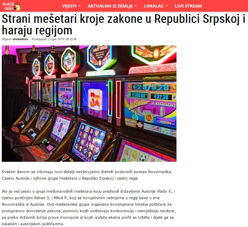 Vrh austrijske policije odlučan je da do kraja ispita veze Slobodarske partije Austrije i "Novomatika", kao i na koje je načine ta kompanija ostvarivala i ostvaruje uticaj na tržište igara na sreću u Republici Srpskoj, ali i u čitavom regionu.