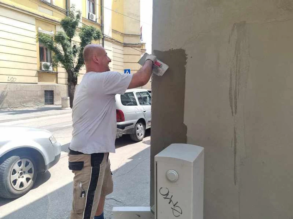 Danima gledam čoveka srednjih godina kako uređuje spoljnu fasadu u centru Leskovca, a komšiluk mi priča, iako ih ne pitam, da je to njegov lokal kojeg je dugo izdavao. Radi pedantno, ivice kao žilet, na zidovima najpre stavlja izolaciju, pa preko lepak. Maže ga kao malter, ravno, formira zid preko koga će doći mrežica, pa opet lepak pa fasadna boja.