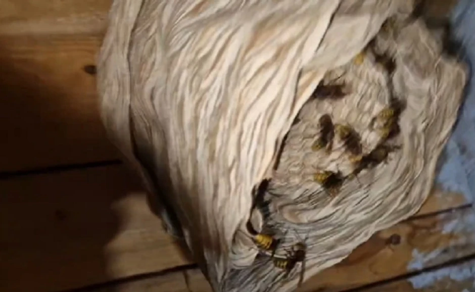 Ipak, kada je osvetlio krov kuće imao je i šta da vidi. Leglo stršljena veličine bureta!