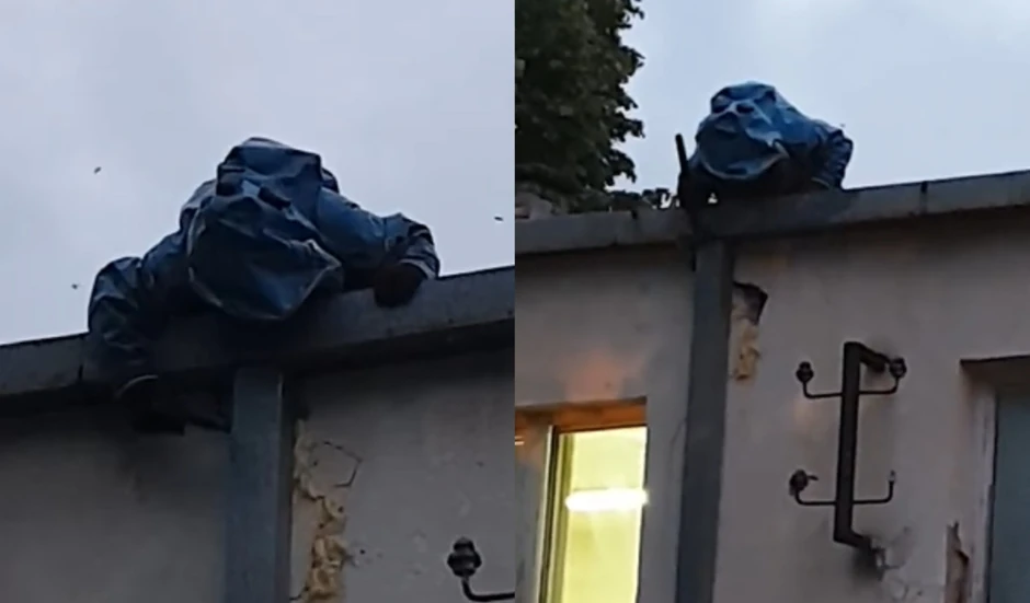 Vladica se potom peo na krov kako bi spolja uklonio i gnezdo koje su stršljenovi napravili kod oluka. Možda deluje lako, ali nimalo nije, još ako se zna da se zbog ujeda stršljena može umreti!