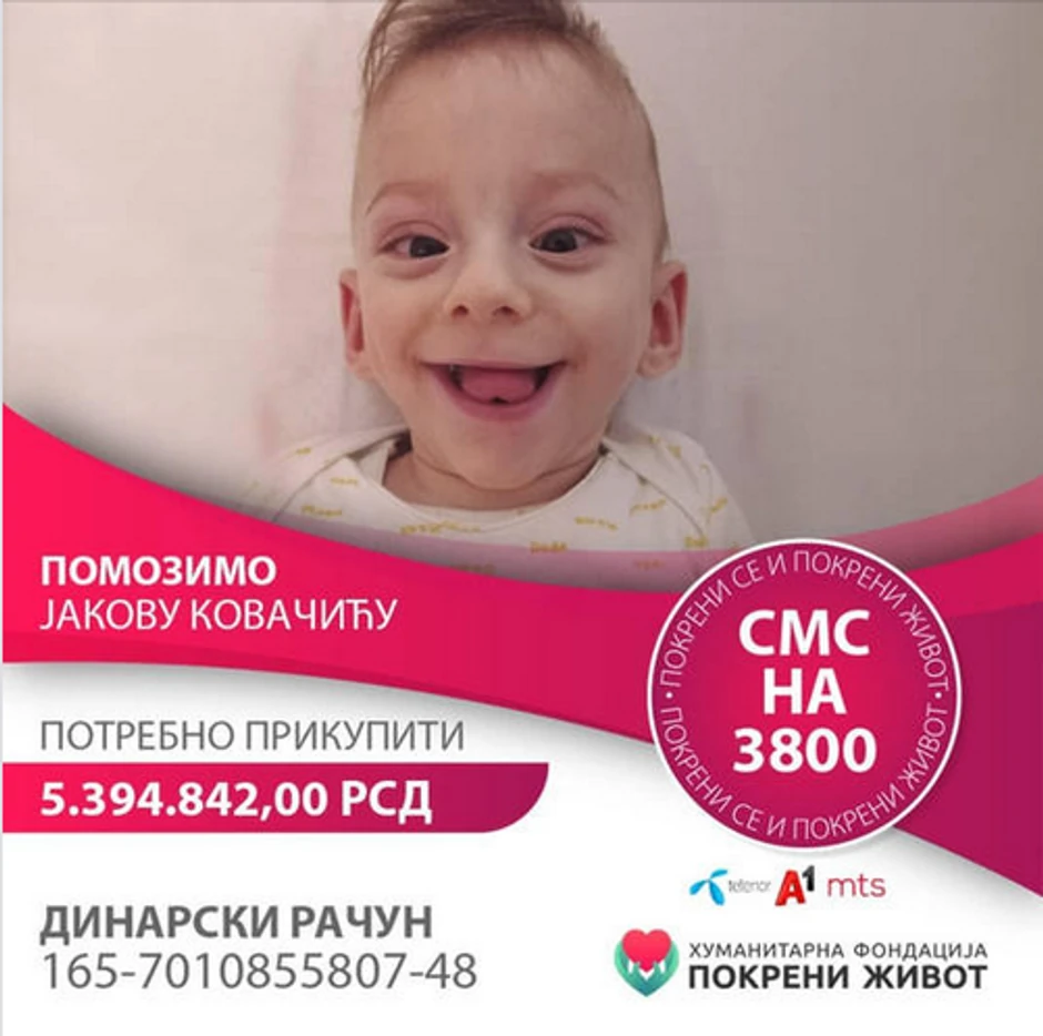 - Nakon izlaska iz bolnice, počinjemo sa intenzivnim fizikalnim tretmanima svakodnevno. Rezultata ima ali nedovoljno. Potrebna su nam sredstva za njegovo dalje napredovanje za specijalističke i kontrolne preglede, dijagnostiku, fizikalne terapije, logopeda, defektologa, kraniosakralnu terapiju, smeštaj. Pozivamo sve ljude dobre volje da pomognu koliko su u mogućnosti, jer smo mi kao roditelji iscrpeli sve resurse. Jakov je jedan veseo i nasmejan dečak, koji nas svakim danom sve više uverava u to koliki je borac - piše na sajtu fondacije "Pokreni život".