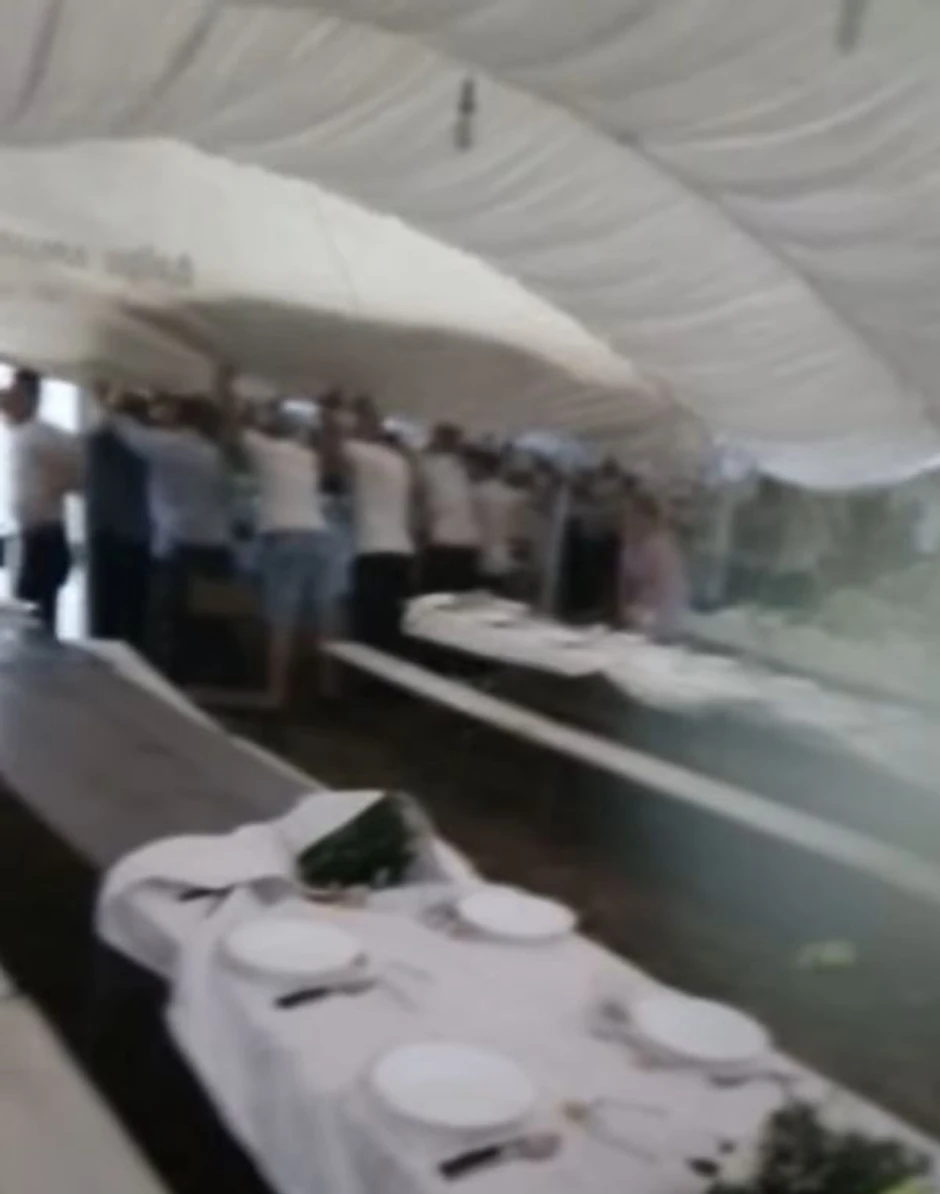 Doduše, dekoracija sa stolova je odletela, kao i poneki tanjih, ali je konstrukcija ostala na mestu, a veselje je nastavljeno.
