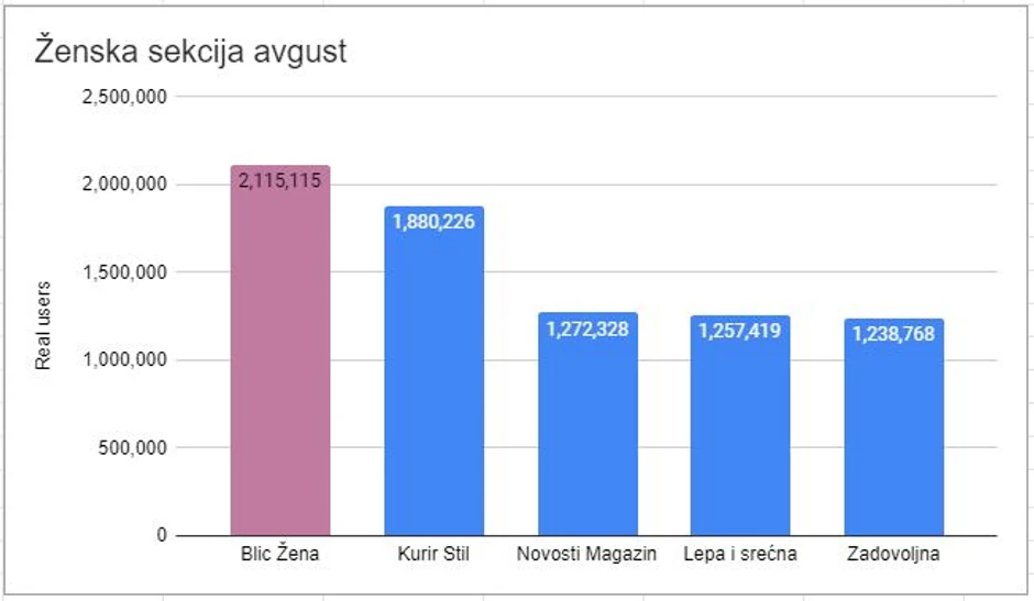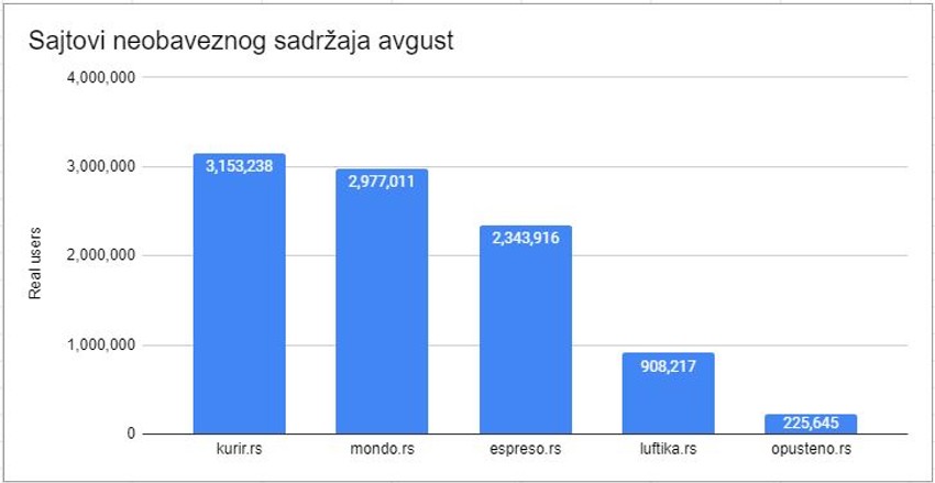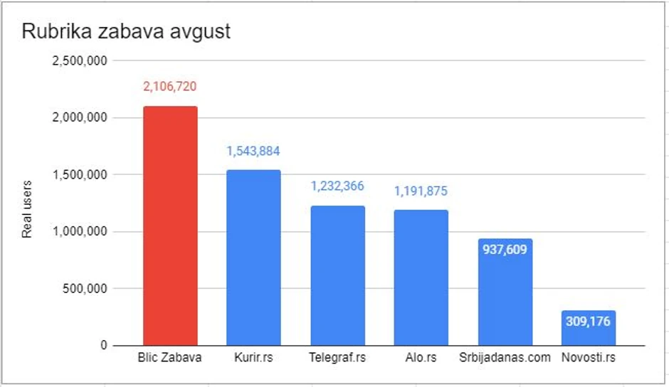 "Blicovu" Zabavu je posetilo čak 2,1 milion jedinstvenih korisnika u avgustu, daleko više nego prvi sledeći konkurentski sajt.