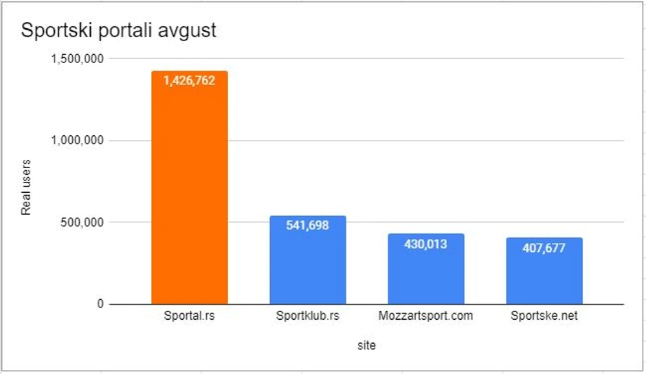 U kategoriji sportskih portala najposećeniji je Blicov Sportal.rs, ispred Sportkluba, Mozzartsporta i sajta Sportske.net.