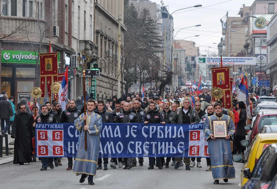 Vernici iz Kragujevca ali i iz ostalih okolnih mesta su na trgu Kod krsta, u centru grada, jednoglasno poručili da su za to da, kako su rekli, „sramni Zakon o slobodi veroispovesti“ koji je izglasala crnogorska skupština, bude povučen.