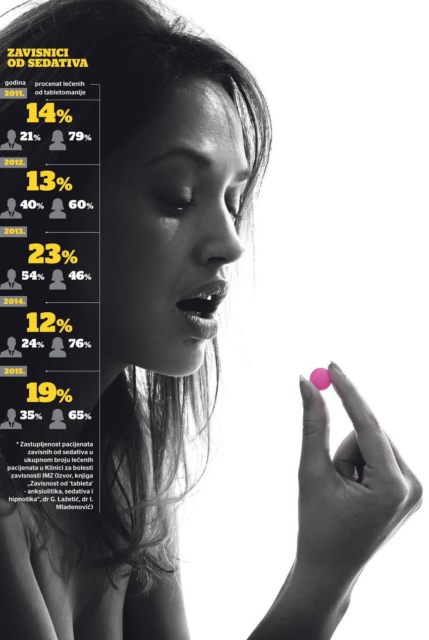 Upravo u njihovoj ustanovi, na Klinici za bolesti zavisnosti u Beogradu, veliki broj pacijenata, gotovo petina, čine upravo oni navučeni na sedative.