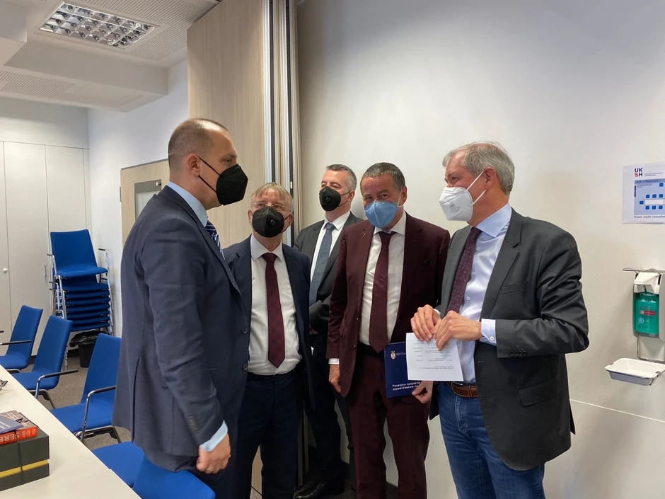 Ministar zdravllja Zlatibor Lončar započeo je svoju radnu posetu Univerzitetskom Kliničkom centru Šlezvig Holštajn u Kilu, u Nemačkoj, koga je dočekao dr Jens Šolc, direktor ove prestižne zdravstvene ustanove i predsednik Udruženja univerzitetskih bolnica Nemačke. Razlog postete, između ostalog je, i dogovor modaliteta saradnje, posebno kada je reč o usavršavanju naših zdravstvenih radnika u UKSH, ali i dolasku njihovih stručnjaka kod nas.