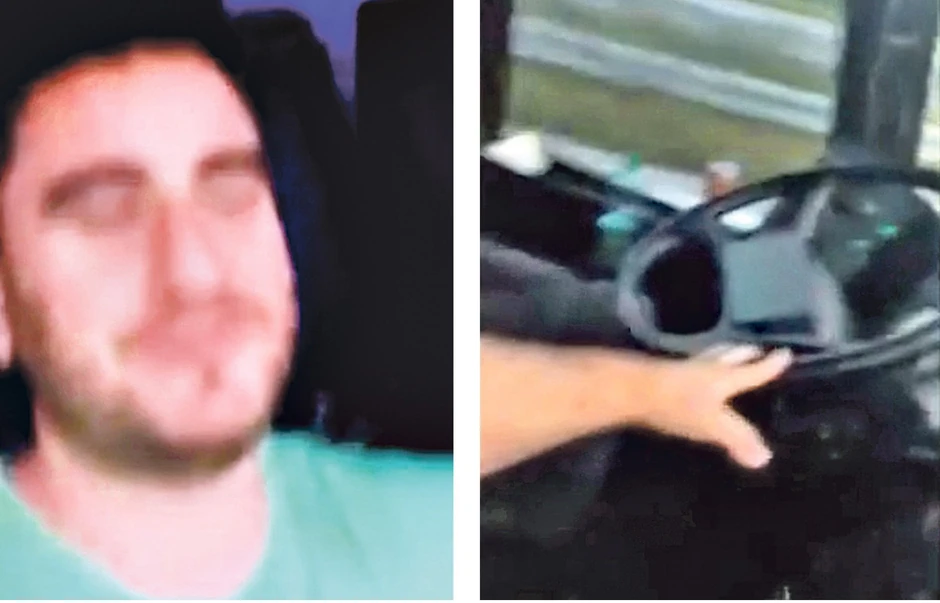 Na snimku se vidi kako Gajić sedi na suvozačevom mestu i jednom rukom drži volan i upravlja autobusom, vozeći brzinom preko 100 kilometara na sat i istovremeno pretičući vozila u njegovoj traci.