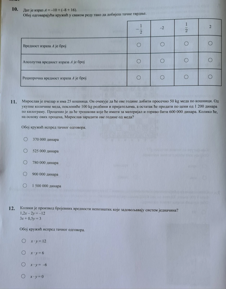 Na ovom linku možete da pogledate rešenja testa iz matematike.