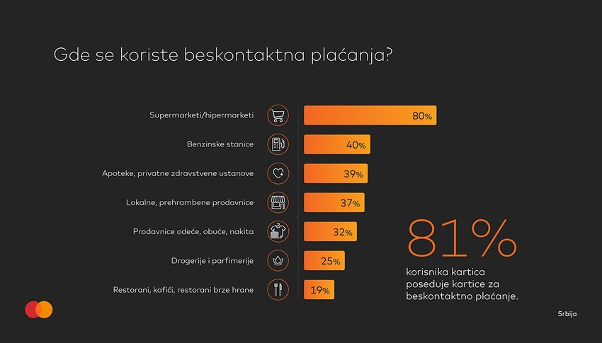 Tradicionalna studija o navikama i očekivanjima aktivnih korisnika kartica, Masterindex Srbija, pokazala je da su beskontaktna plaćanja platnim karticama i mobilnim telefonima realnost za 81% građana. Masterindex istraživanje je takođe pokazalo da korisnici najčešće koriste brza i sigurna beskontaktna i mobilna plaćanja u supermarketima (80%), na benzinskim stanicama (40%) apotekama i privatnim zdravstvenim ustanovama (39%), a tu su još i male komšijske radnje (37%) i prodavnice odeće i obuće (32%).