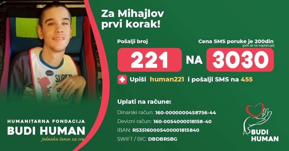 Usled prevremenog rođenja, u šestom mesecu trudnoće, Mihajlo Ilić (20) je dobio cerebralnu paralizu i oslepeo. Svih ovih godina Mihajlo se bori za život. Imao je više operacija koje su mu pomogle da kvalitetnije živi.