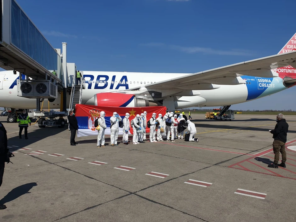 Avion sa kineskim stručnjacima i četiri miliona zaštitnih maski stigao je danas iz Kine. U Srbiju je stiglo 14 kineskih stručanjaka koji će pomoći da se instaliraju dve mašine, kupljene od kineske firme "Health care", pomoću kojih će Srbija sama praviti maske. Dve mašine će moći da proizvedu 192.000 maski na dan.