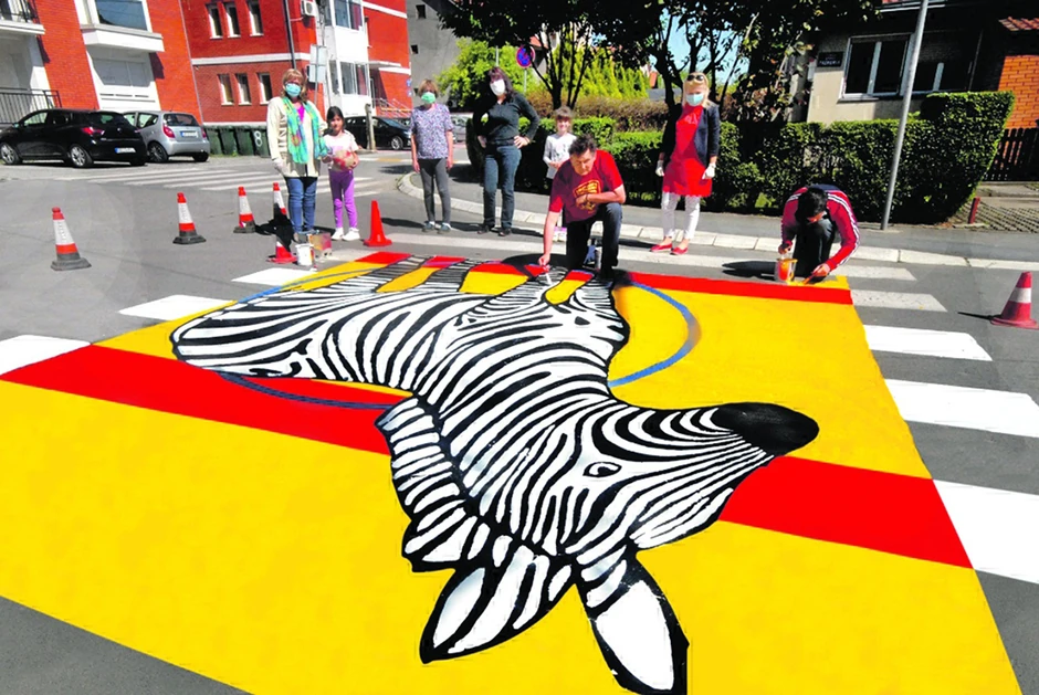 - U proseku, potrebno je oko pet dana. Oslikane specijalnim bojama za puteve, zebre traju različito. Negde par godina, a negde koliko traje ta boja, zavisi od prometa. Na početku, prolaznici po pravilu izbegavaju da po zebrama gaze, ali se vremenom oslobode i na tome insistiram jer svaka na ovaj način oslikana raskrsnica ili pešački prelaz postaju mini-galerija, vidljiva mnogima - objašnjava Mitrović.
