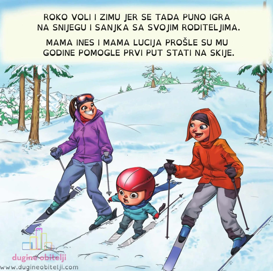 Ovu knjigu za decu čine priče Roka i Ane, četvorogodišnjaka koji idu u vrtić, putuju sa porodicom... Jedino po čemu se razlikuju je to što Ana ima dvojicu tata, a Roko dve mame. Tako je svakodnevica Roka, koji živi sa mamom Lucijom i mamom Ines, kao i Ane, koja ima tatu Tomislava i tatu Darka, predstavljena na po desetak strana.