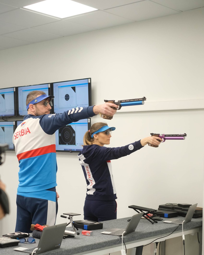 Današnjem treningu pridružili su se članovi reprezentacije Srbije u streljaštvu Damir Mikec, Zorana Arunović, Duško Petrov, Brankica Zarić, kao i Dimitrije Grgić i Jasmina Milovanović.