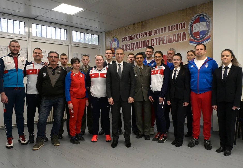 - Danas je ovde sa nama zaista mnogo šampiona, i osvajača olimpijskih medalja i svetskih i evropskih prvenstava u streljaštvu. Želim da vam se svima zahvalim što ste izdvojili vreme i, naravno, da izrazim posebnu zahvalnost Jasmini i Dimitriju, koji su pripadnici naše Sportske jedinice Ministarstva odbrane i koji i inače tokom godine drže treninge učenicima naših vojnih škola – rekao je ministar, dodajući da to očigledno odlično rade s obzirom da učenici obe vojne škole uporno nižu medalje na svim juniorskim prvenstvima.