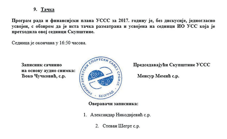 - Izjave i dokumentaciju već su dali neki članovi Skupštine, ali i sam Siniša Jasnić. Ono što je za sada izvesno, to je da, na osnovu zapisnika i pisanih dokumenata, nije postojala posebna tačka dnevnog reda o osnivanju preduzeća i da odluka o tome ne postoji. Članovi Skupštine koji su dali izjave, eksplicitno tvrde da o tome nije bilo reči na sednici Skupštine 14. februara 2017. Oni tvrde da ih niko nije zvanično obavestio o formiranju preduzeća "Evropske univerzitetske igre 2020 Beograd", koje je registrovano u APR 14. septembra 2017. godine, i da su za njega slučajno saznali. Navode i da je novac prebačen od Ministarstva sporta, potrošen bez njihove saglasnosti, i to 130 miliona dinara za dva meseca, od čega čak 570.000 evra za izradu master plana Univerzijade. Istraga će utvrditi da li ima krivičnog dela - navodi naš sagovornik.