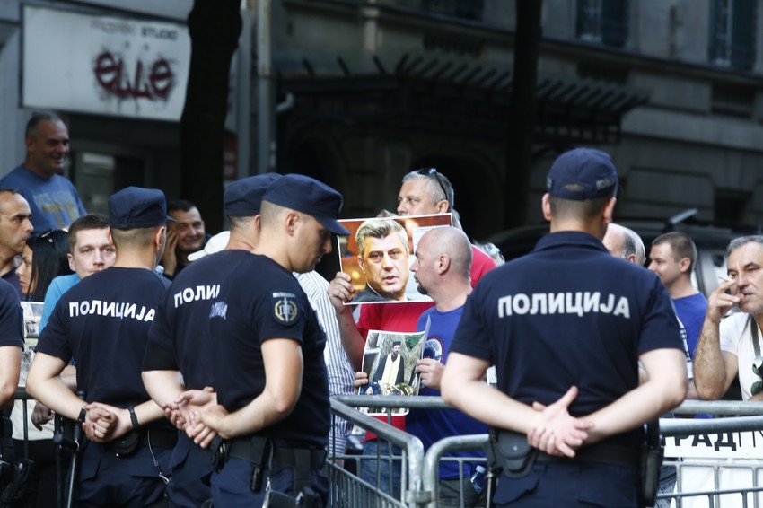 Grupa pripadnika Srpske radikalne stranke, među kojima su i predsednik te stranke Vojislav Šešelj i poslanica Vjerica Radeta, prišla je na stotinak metara od Centra za kulturnu dekontaminaciju (CZKD), gde je za večeras zakazan početak festivala "Mirdita - Dobar dan". Sa druge strane su organizatori festivala iz Inicijative mladih za ljudska prava i publika među kojom su i nekadašnji ministar kulture Ivan Tasovac i lider LDP Čedomir Jovanović.