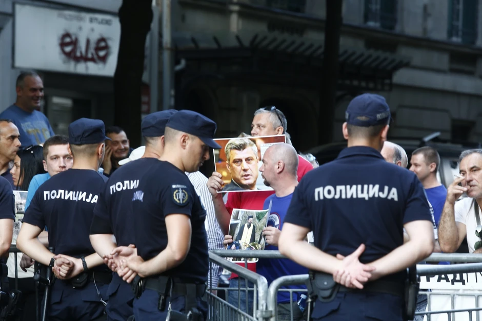 Ispred zgrade CZKD, u kojoj je za večeras planirana izložba i projekcija filma, nalazi se kordon policije, a radikali su stali na desetak metara od kordona noseći stranačka obeležja, zastave i fotografije na kojima su prikazani zločini terorističke OVK.