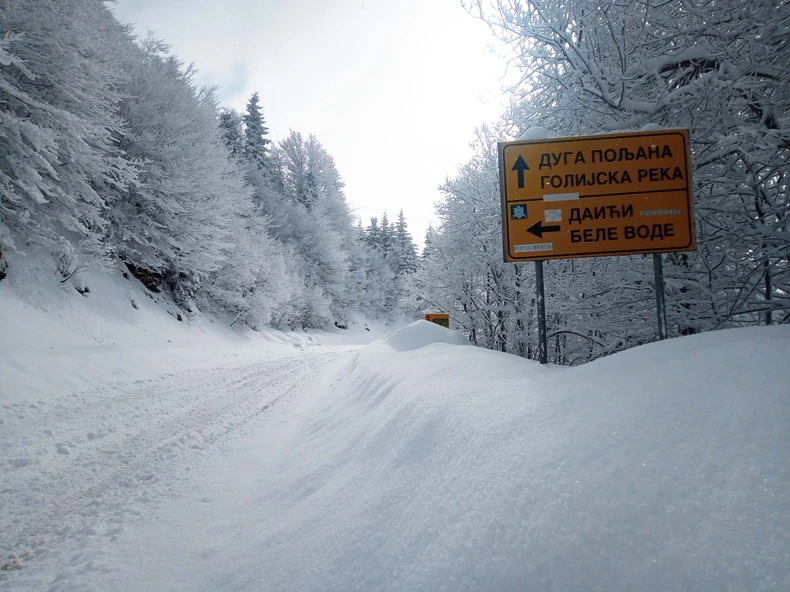 Iako bar kalendarski do proleća brojim sitno, iz pojedinih delova Zapadne Srbije stižu prizori kao da je decembar. Na Goliji je trenutno zavejan put koji vodi prema Novom Pazaru, a kritična deonca Preko Brdo - Odvraćenica neprohodna je za saobraćaj. Snežni smetovi dostižu visinu od nekoliko metara, a jak vetar i dalje otežava posao putarima.