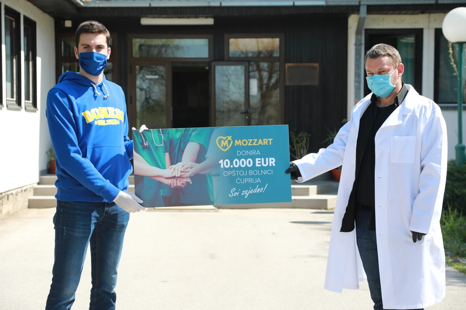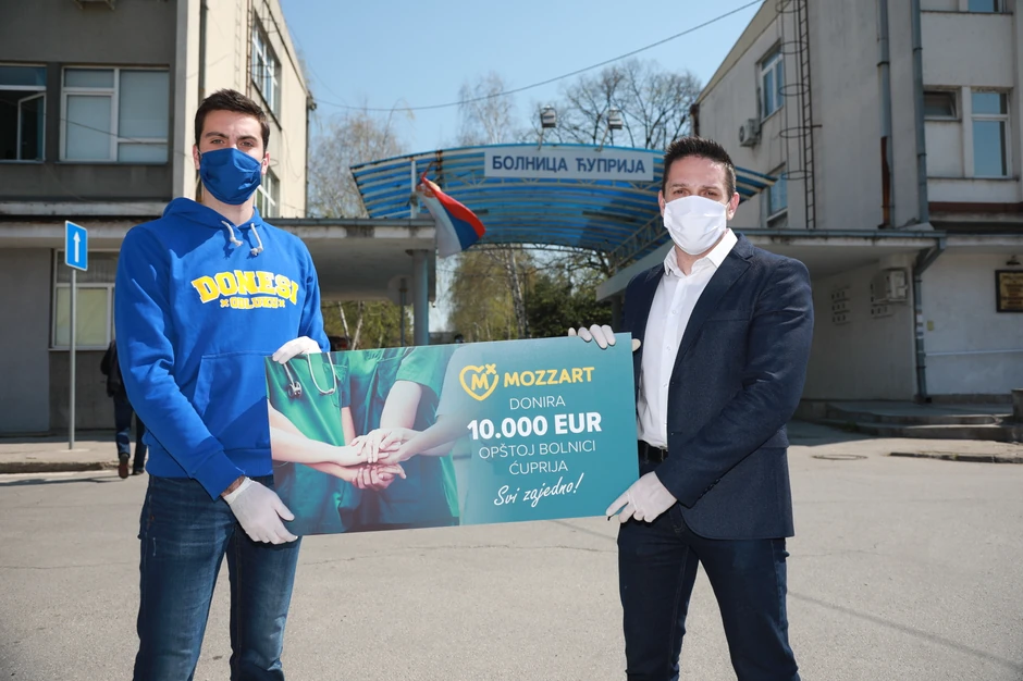 - I pre teške situacije koja nas je zadesila, smatrali smo da je zdravstvo oblast u koju treba posebno ulagati, ali smo sada smo još čvršći u tom uverenju. Znamo da je situacija u ćuprijskoj bolnici veoma teška i da je mnogo medicinskih radnika pozitivno na korona virus. Oni jesu heroji čitave nacije, ovom donacijom želimo da im izrazimo zahvalnost, ali i pružimo podršku i ohrabrenje da istraju. Svaka im čast na požrtvovanosti, a kompanija Mozzart je tu da kao i do sada bude solidarna i pomogne, rekao je direktor sektora korporativnih komunikacija u kompaniji Mozzart Borjan Popović.
