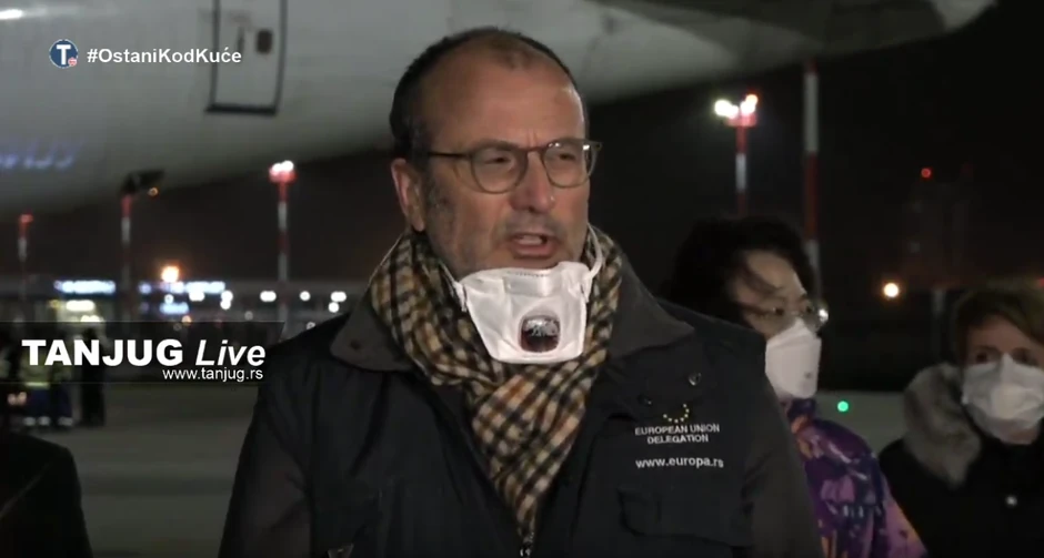 - U ovim teškim vremenima pozitivno je što postoji solidarnost. Za EU solidarnost je prosto deo naše DNK. U januaru, kada je virus u Aziji bio na vrhuncu, EU poslala više od 45 tona materijala Kini i vratila građane EU i građane Srbije svojim kućama. Juče je EK najavila paket pomoći od 93 miliona evra, od toga je 15 miliona za pružanje neposredne pomoći, kao što je dopremanje materijala. Ostatak sredstava odnosi se na pomoć privredi Srbije, na pomoć u slučaju guitku posla - rekao je Fabrici i dodao da je EU finansirala ne samo dolazak večerašnjeg aviona, veći drugih, koji će pristići u narednim danima.