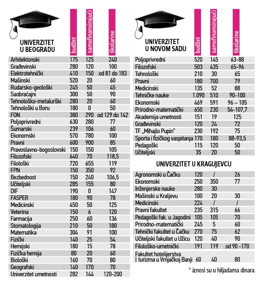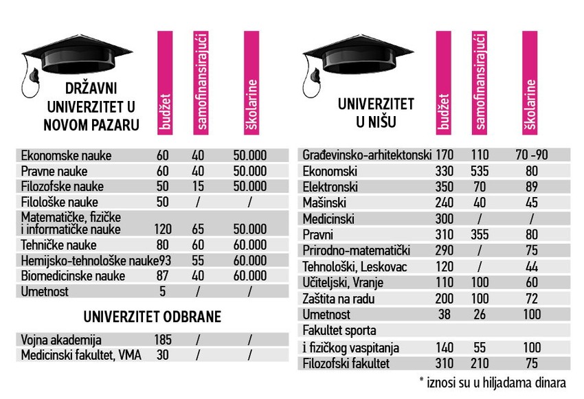Čak 6.975 mesta rezervisano je za budžetlije u visokim strukovnim školama, dok će na nivou master studija biti finansirano školovanje 7.686 studenata.