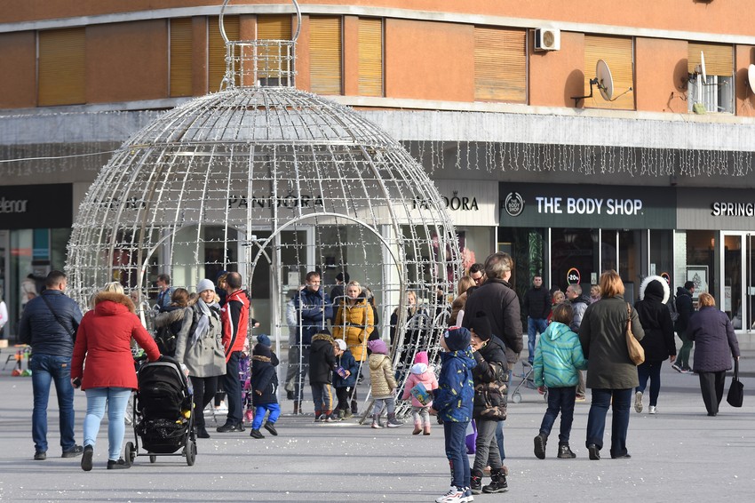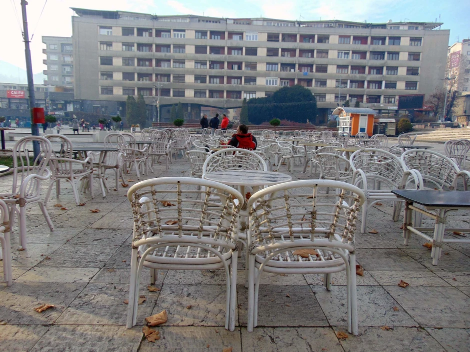 U baštama ugostiteljskih objekata na Trgu partizana tek poneki pojedinac, zaseo da uhvati zrake decembarskog sunca.