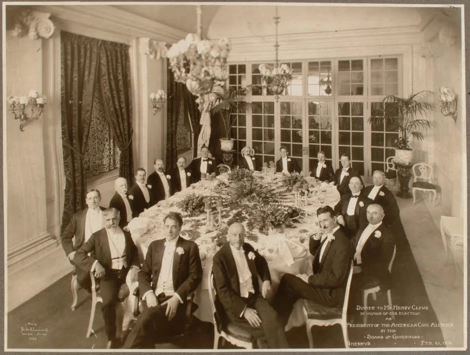 Večera na kojoj je zabeležena fotografija je organizovana povodom izbora gospodina Henrija Klivsa za predsednika Američkog udruženja građana, a među cenjenim gostima nalazio se i Nikola Tesla koji je bio rado viđen gost na zabavama njujorškog visokog društva na kojima se diskutovalo o poeziji, politici i nauci.