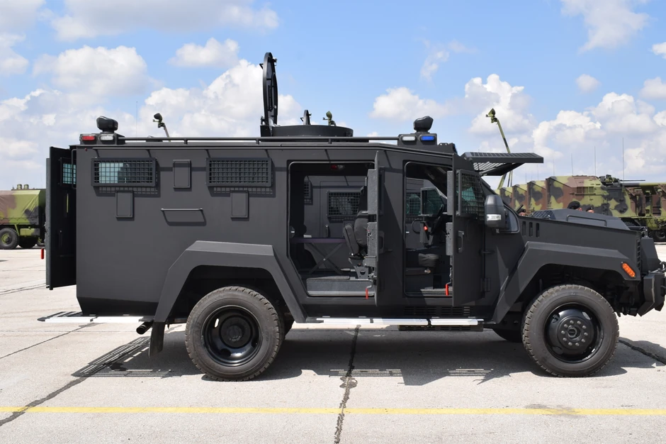 U Batajnici je prikazana policijska verzija oklopnjaka BerKet G3, sa rešetkastima dodacima na šoferšajbni i bočnim vratima.