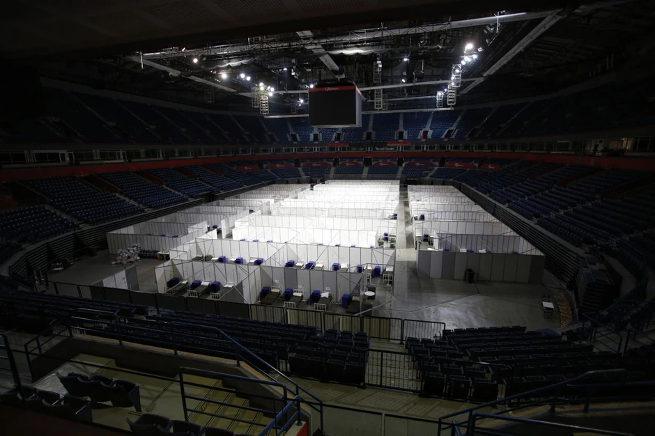 Dr Vlado Batonžić, direktor Zavoda za zdravstvenu zaštitu radnika Železnice Srbije, jedan od lekara koji brinu o kovid pacijentima u privremenoj bolnici u Kombank areni, kaže da je tokom dana primljeno 14 inficiranih korona virusom.