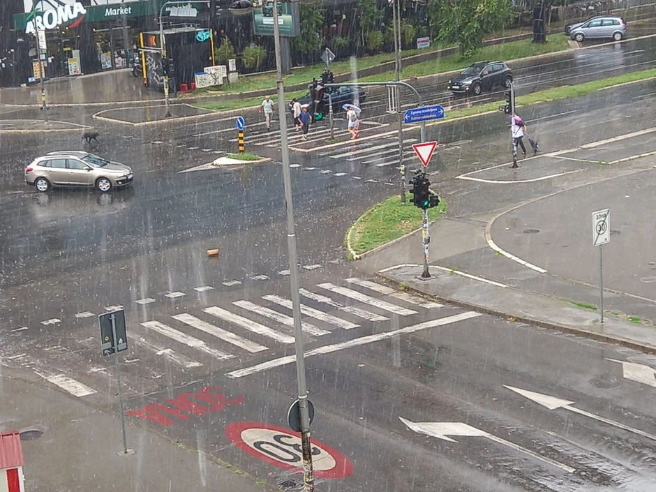 Udari vetra su jaki, a intenzitet nevremena je sve veći. Jak pljusak u Novom Sadu se pojačava iz minuta u minut.