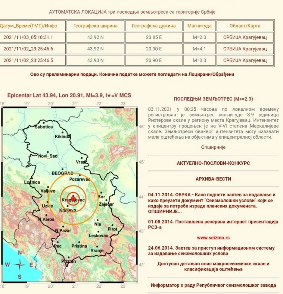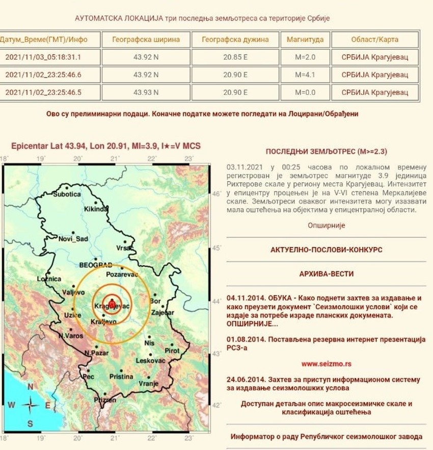 Podsetimo, sinoć je Kragujevac pogodio još jedan zemljotres dvadesetak minuta nakon ponoći, a kako smo pisali, zemljotres se osetio i u Beogradu.