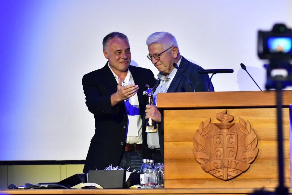 Profesor Aleksandar Kavčić je lično dodelio nagradu "Počasni Prosvetitelj", nagradu za životno delo u oblasti obrazovanja mladih, koju je uručio prof. dr Vojislavu Andriću.
