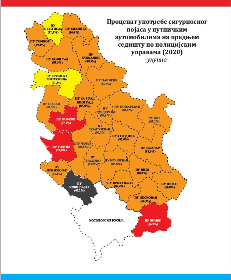 Ipak, ono što je dobro, jeste činjenica da je upotreba sigurnosnog pojasa na prednjem sedištu u Republici Srbiji 2020. godine veća za 9,4% u odnosu na prošlu godinu, dok je upotreba sigurnosnog pojasa na zadnjem sedištu u protekle četiri godine porasla za 10,5%.