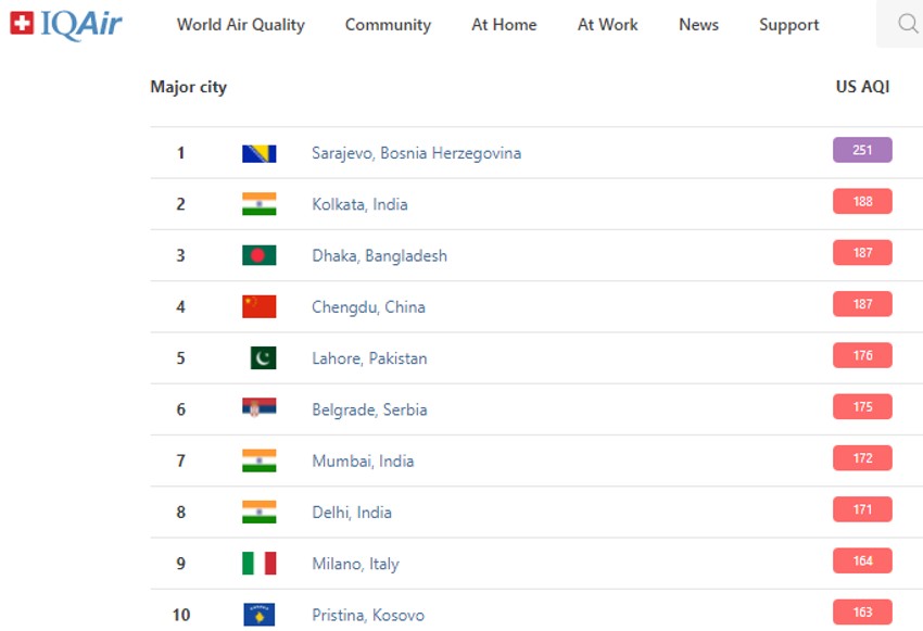 Inače, srpska prestonica je ovog popodneva šesta na neslavnom listi najzagađenijih glavnih gradova dražava ili regiona na planeti, pokazuju podaci sajta "AirVisual", koji takođe meri aerozagađenje u svetu.