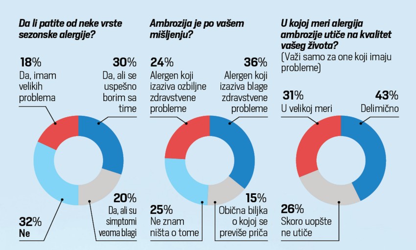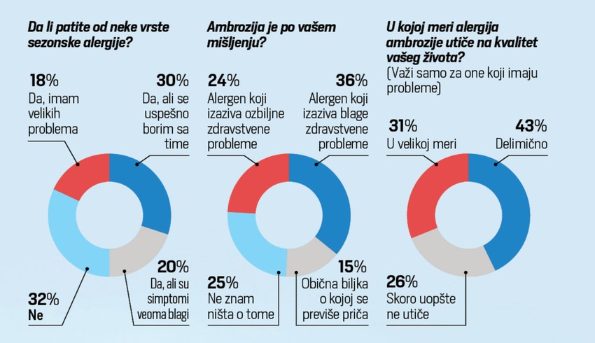 Svega 26 odsto ispitanika od onih koji su alergični na ambroziju kaže da im alergija skoro uopšte ne utiče na kvalitet života, dok najvećem broju otežava svakodnevni život.