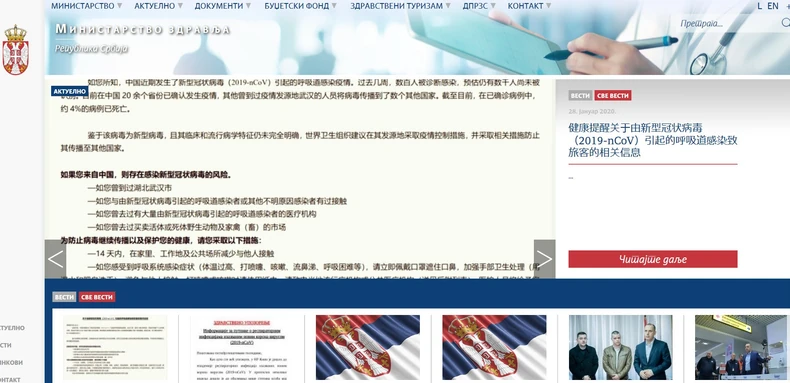 Ukoliko ste danas pokušali da dobijete neku informaciju sa zvaničnog sajta Ministarstva zdravlja RS, verovatno ste "na prvi pogled" pomislili da im je neko hakovao sajt! Naime, prvo što se pojavljuje na ovoj stranici su obaveštenja na - kineskom!