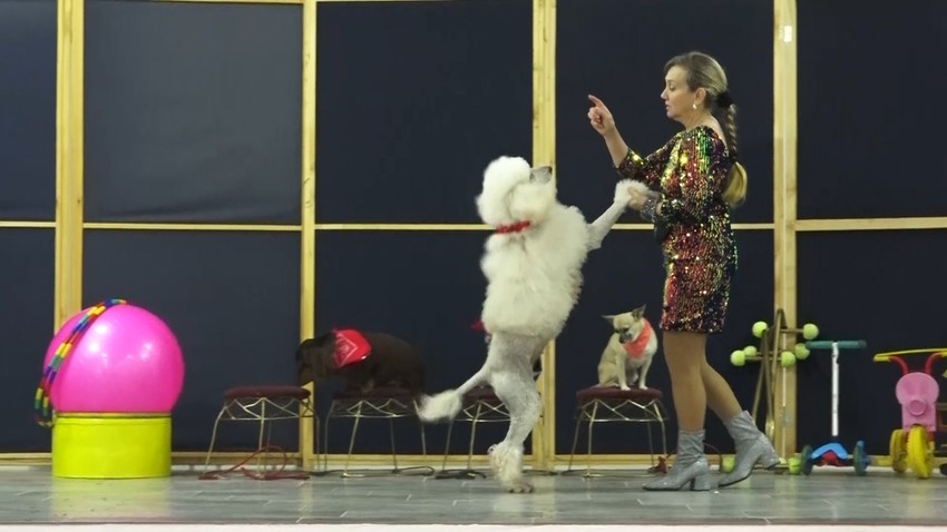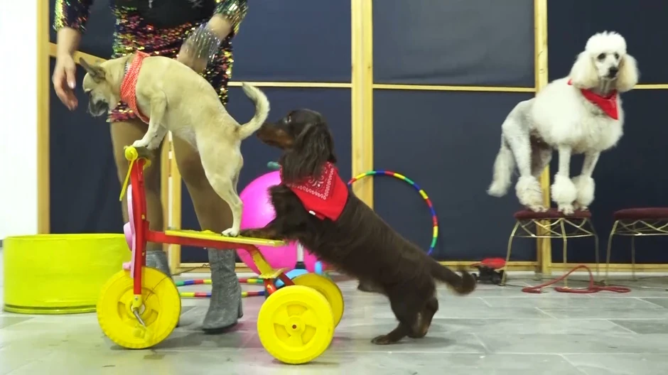 Pudla Žuža na sceni pleše sa Vladom već 13 godina i to je najstariji pas. Još je spretnija kada joj pomaže Vito. Dok on gura obruč, Žuža se kroz njega provlači. Čivava Tifani je prava atrakcija za gledaoce. Vozi sve sto ima točkove, i bicikl i trotinet.
