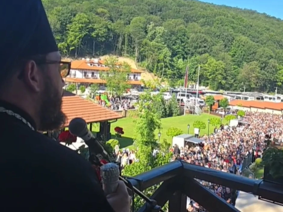 Okupljenima se obratio i iguman manastira, otac Dimitrije, a na snimcima se može videti da se dosta ljudi nalazi i ispred svetinje.