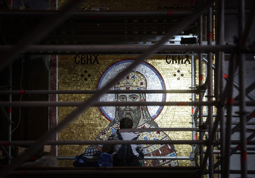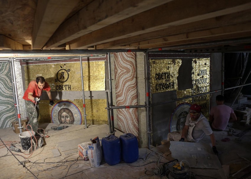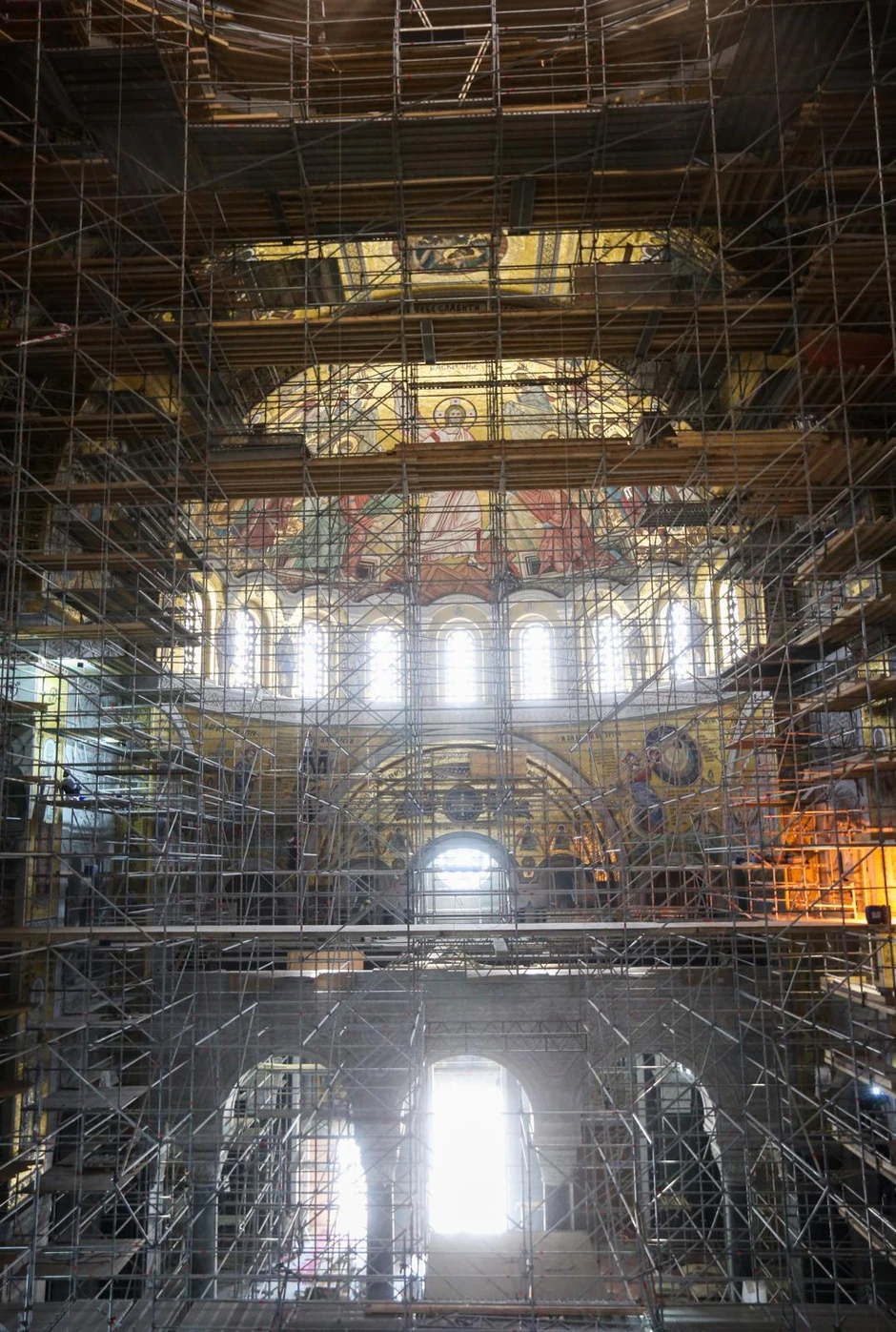 - Dok se radio mozaik, unutar hrama bile su postavljene skele više od 22 sprata, a sada je ostao samo još prvi red. Mozaik rade samo Rusi, a dok su sve skele bile postavljenje, izgledalo je kao u košnici, skela se činila kao saće u kojima je pedesetak virtuoza radilo. Trenutno se radi u tri smene, i noću, kako bi se u narednih dvadeset dana baš sve završilo. Trenutno se pričvršćuju bronzana vrata i postavljaju se polijeleji (lusteri). Unutrašnjost hrama ostavlja bez daha, čak i kroz skele - kaže izvor "Blica".