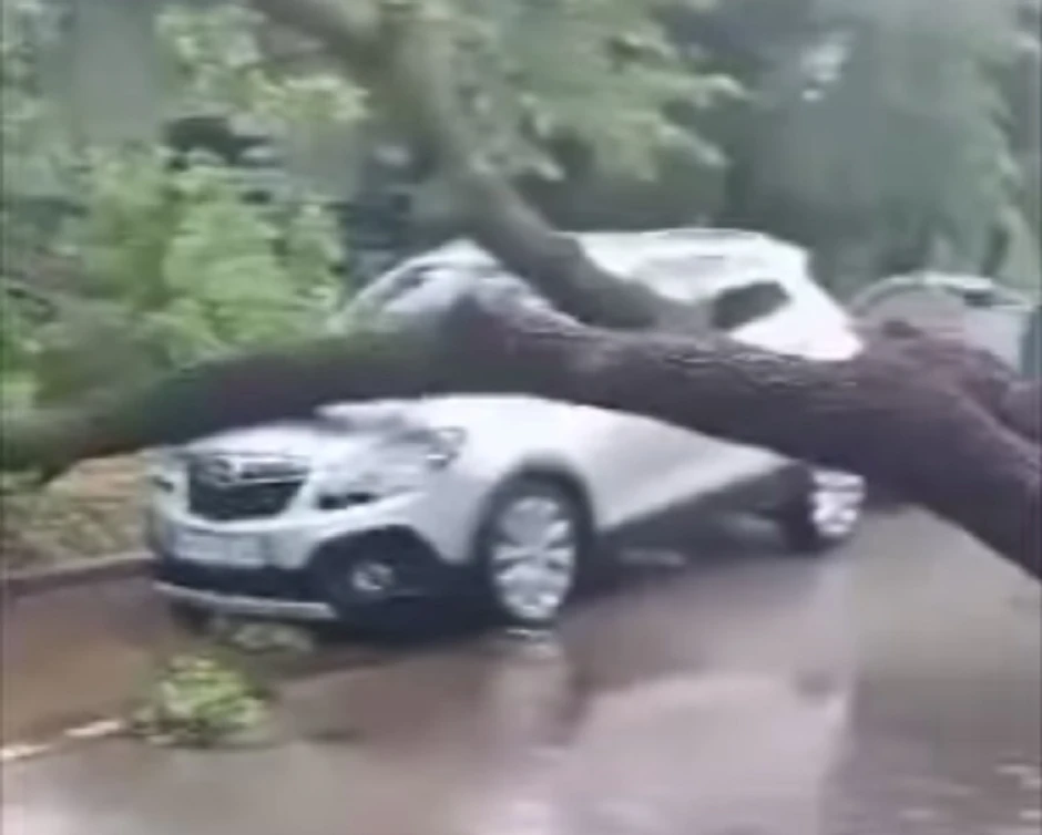 Drveće je palo preko parkiranih automobila, a ulica je bila blokirana za prolaz.