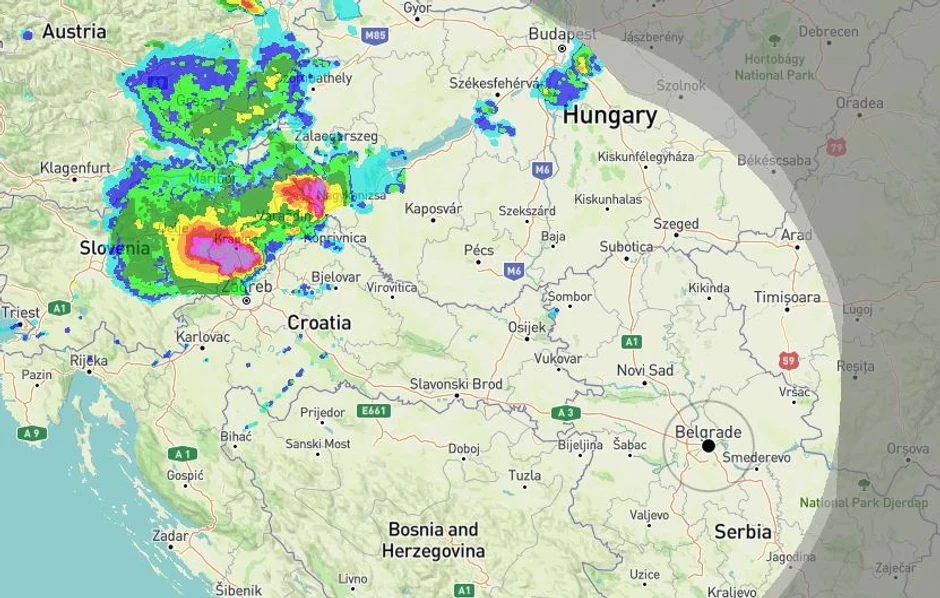 Oluja sa grmljavinom pogodila je danas Sloveniju. Nevreme se polako premešta ka Hrvatskoj, a prema najavama RHMZ, zahlađenje će stići i u Srbiju, i to u noći između petka i subote.
